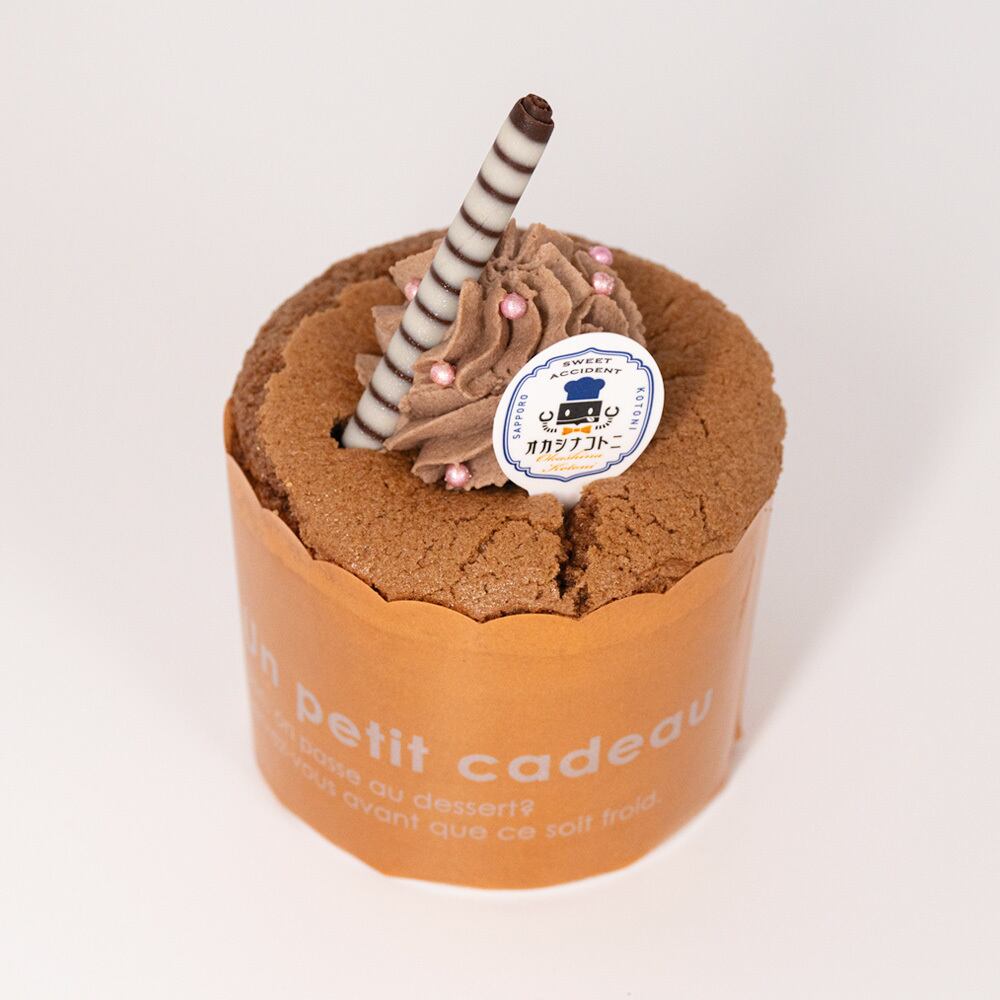 北海道産の米粉、卵、豆乳を使用したチョコ生地のカステラにチョコクリームをたっぷり詰め込み、可愛くトッピングしました。